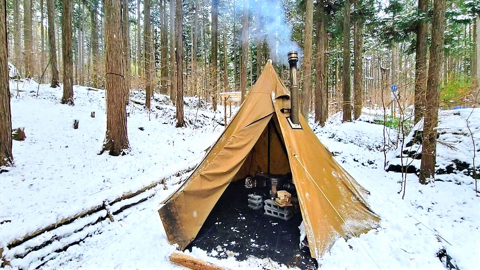 大井川の上流に面したこの地に、吊り橋を渡ってたどり着く特別なキャンプエリア